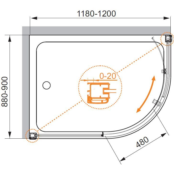 Поддон: тип RH (радиус 550). Поддон приобретается отдельно.