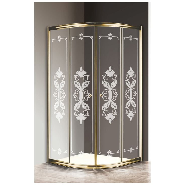Душевой уголок Cezares (Цезарис) GIUBILEO-R-2-100-SCORREVOLE-CP-G цвет профиля золото, стекло прозрачное c матовым узором 6 мм 100х195х100 см