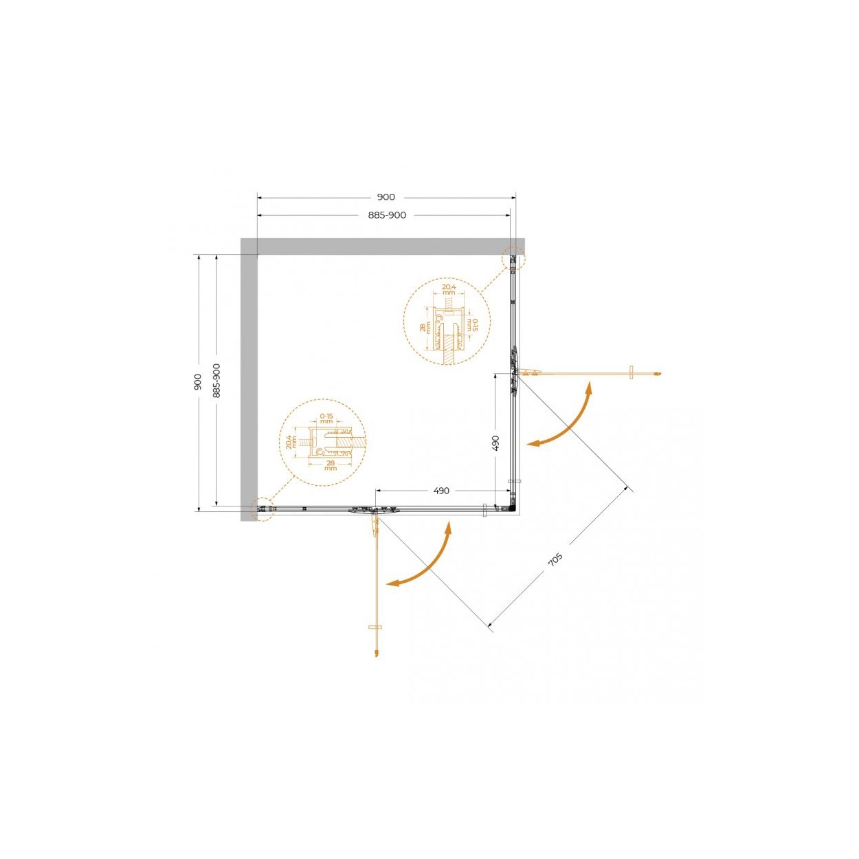 Душевой уголок Cezares (Цезарис) LINER-A-2-90-C-Cr цвет профиля хром, стекло прозрачное 6 мм 90х195х90 см