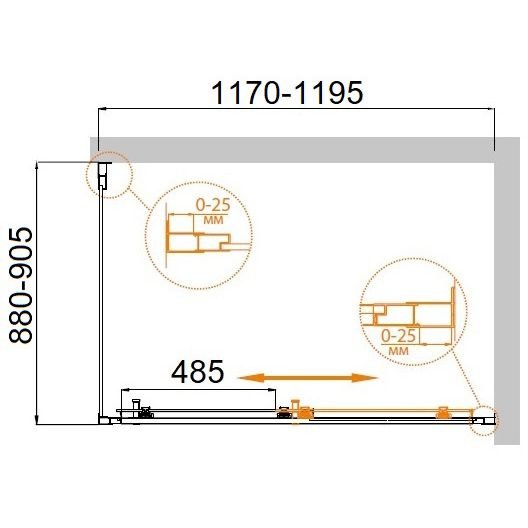 Регулировка ширины: предусмотрена за счет боковых профилей