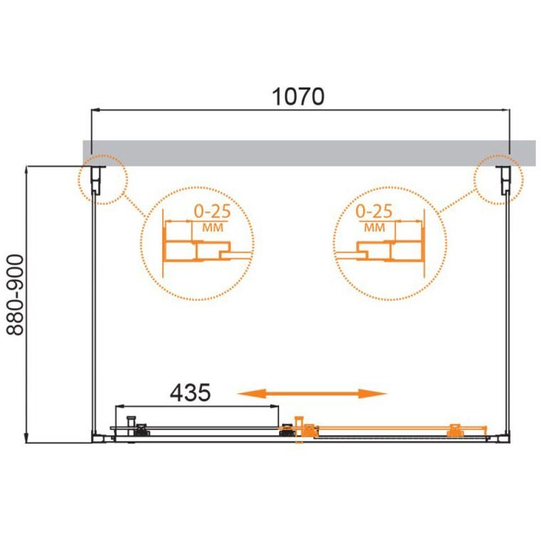 Регулировка ширины: предусмотрена за счет боковых профилей