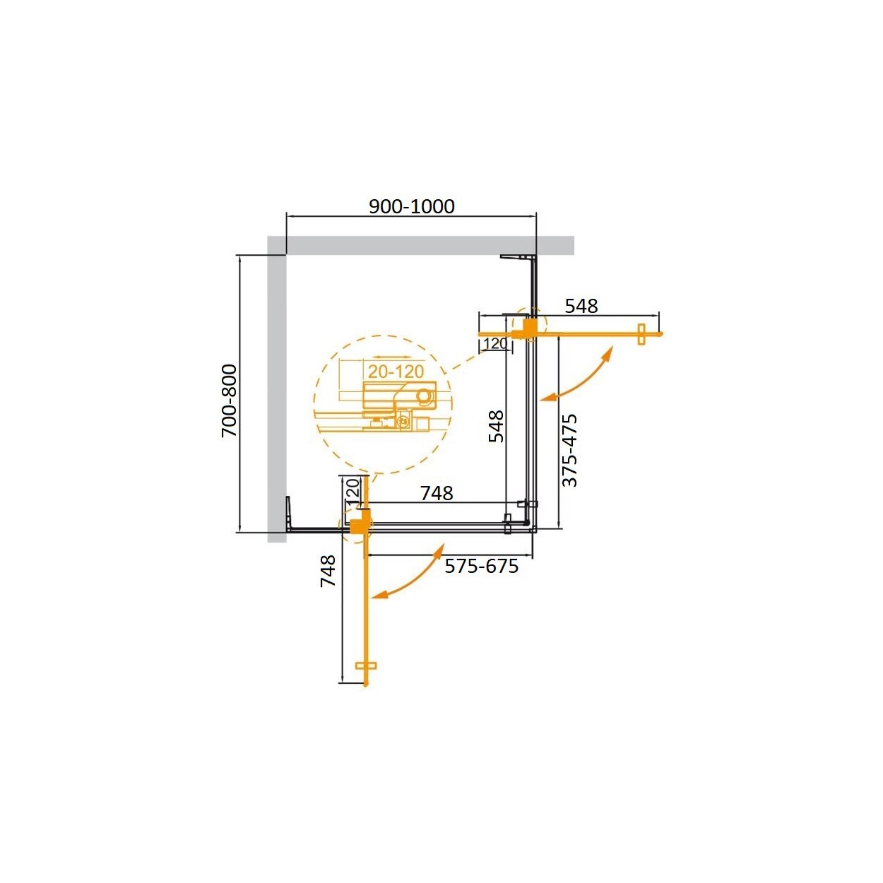 Душевой уголок Cezares (Цезарис) SLIDER-AH-2-70/80-90/100-GRIGIO-BORO цвет профиля золото, стекло прозрачное 8 мм 80х195х100 см