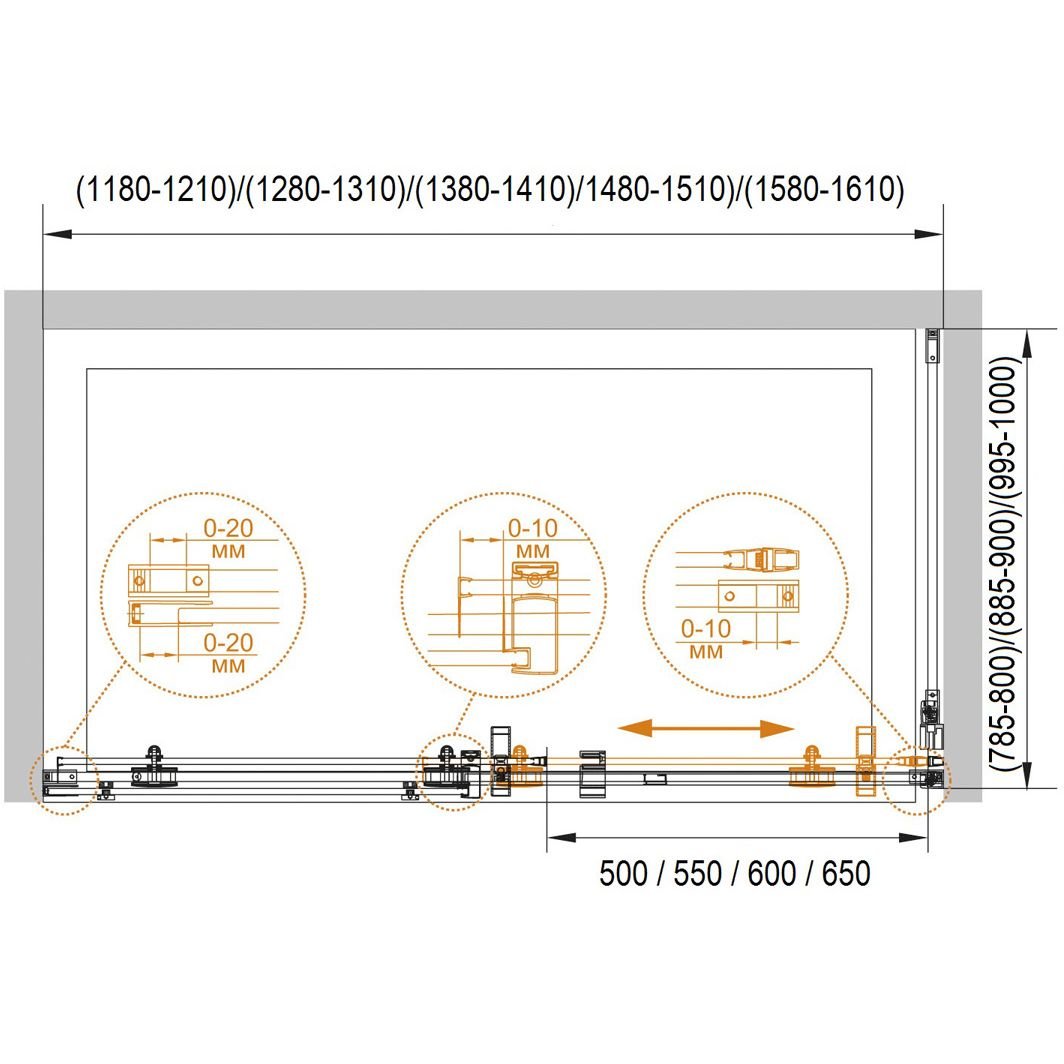 Регулировка ширины: предусмотрена за счет боковых профилей