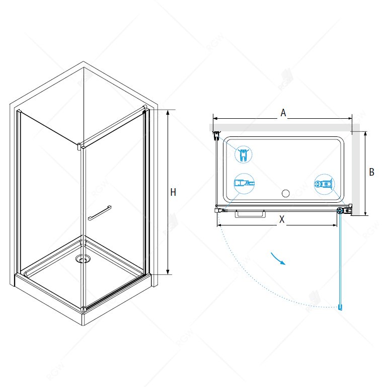 Душевой уголок RGW PA-48 состоит из RGW PA-03 Хром и боковой панели RGW Z-050-1 и верхнего держателя. Петля с функцией подъема двери. В комплекте нижняя пороговая планка. Трап или поддон приобретается отдельно.