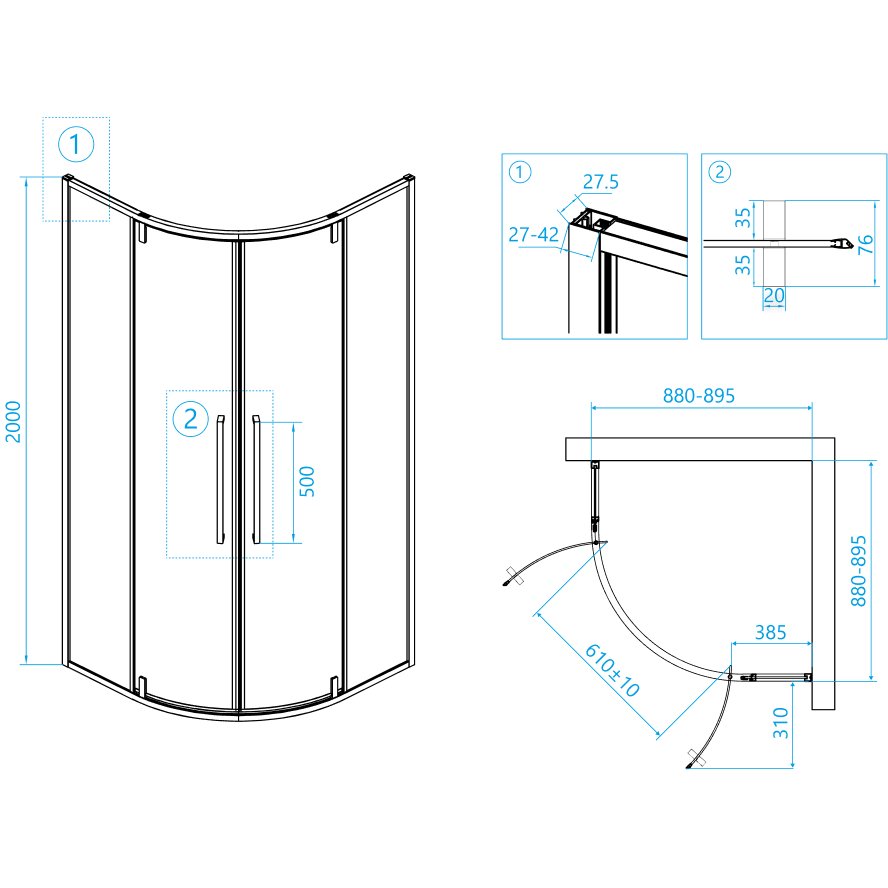 Душевой уголок полукруглый с двумя поворотными дверцами. Поворотный стержень (петля) из нержавеющей стали. Двойные ручки из нержавеющей стали 50 см. Прочное стекло рассчитано на активное использование и покрыто специальным защитным покрытием Easy Clean, которое избавит вас от борьбы с известковым налетом. Достоинства прозрачного стекла: душевые кабины с прозраными стеклами могут визуально расширить пространство даже небольшой ванной комнаты. Особенно это касается кабин с низким поддоном. Легкая стильная конструкция идеально сочетается с самыми популярными аксессуарами ванных комнат. Имеет стильный, лаконичный дизайн. Трап или поддон приобретается отдельно.