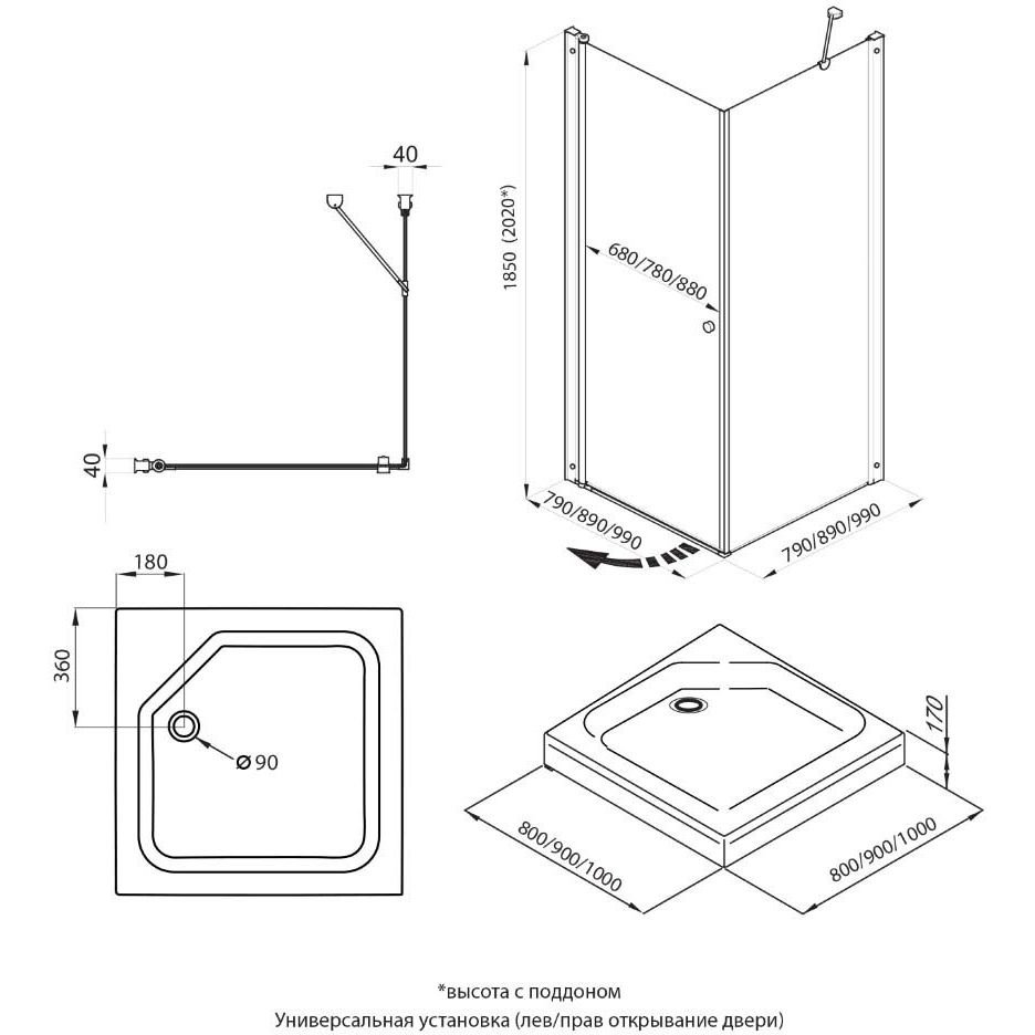 Душевой уголок Тритон (Triton) Форта-Хром 900х900х2020 мм, прозрачный 5 мм, профиль хром (Щ0000053344) низкий поддон (3 места+сифонD90мм)