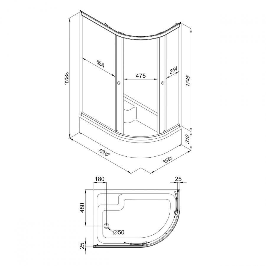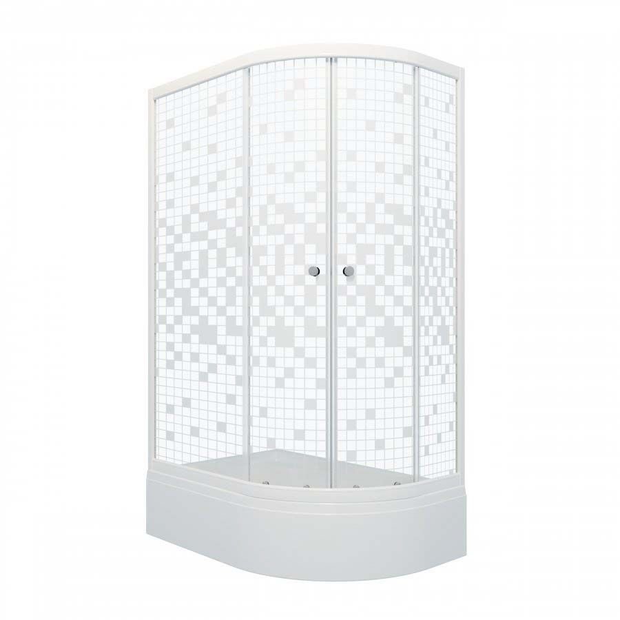 Душевой уголок Тритон (Triton) Коралл 800х1200х2055 мм, прозрачный,с рисунком 4 мм, профиль белый (Щ0000061782) В левая мозаика (2 места+сифон D50)