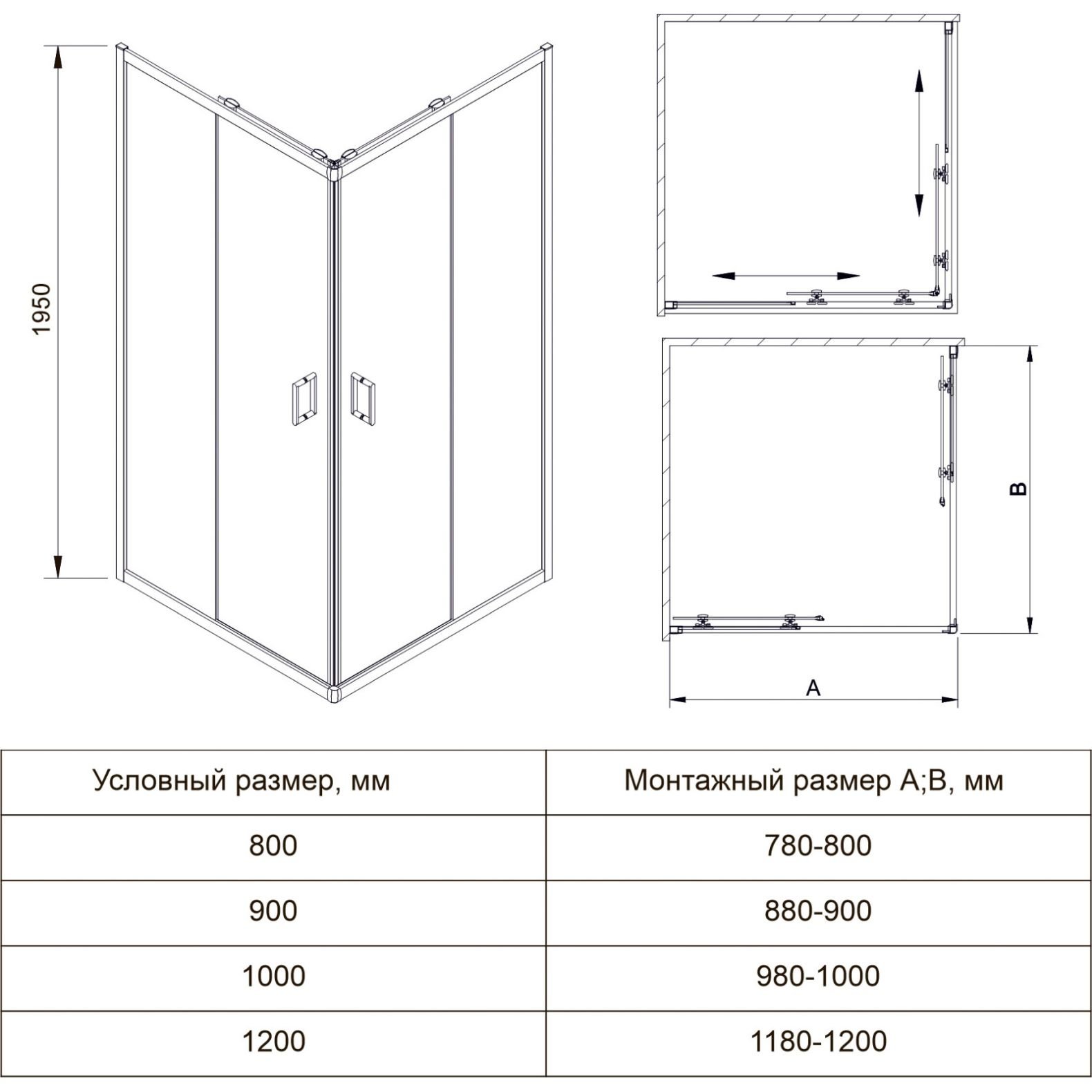 Душевой угол раздвижной квадратный. Две раздвижные двери. Стекло закалнное безопасное 6 мм. Магнитные уплотнители . Профиль анодированный алюминий. Регулируемые двойные ролики. Двусторонняя ручка-скоба из ABS пластика. Универсальная установка открывания двери.