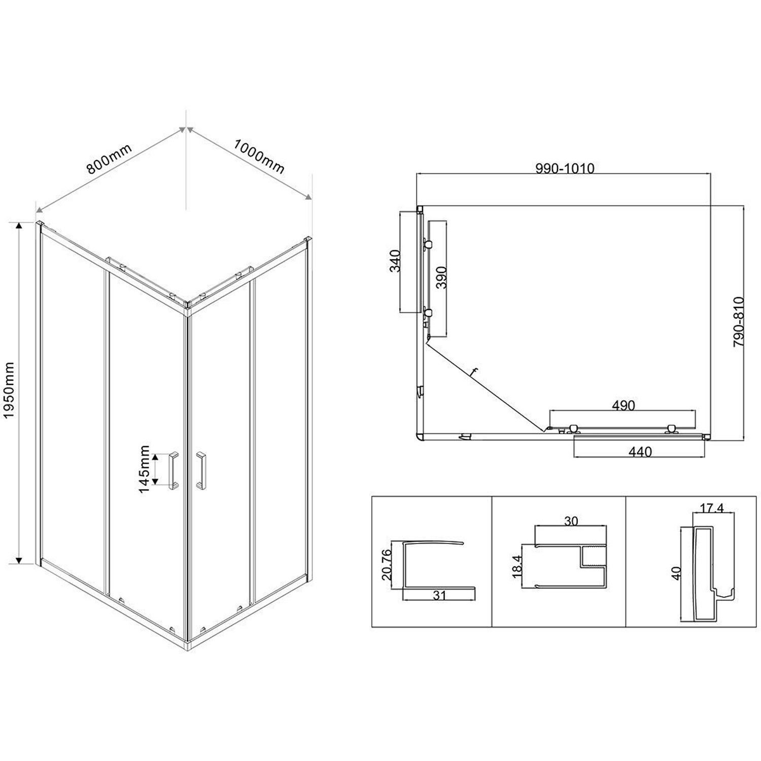 Душевой уголок Vincea (Винчея) City VSS-5CT8010MT, 1000х800 мм (габариты площадки) хром, стекло текстурное