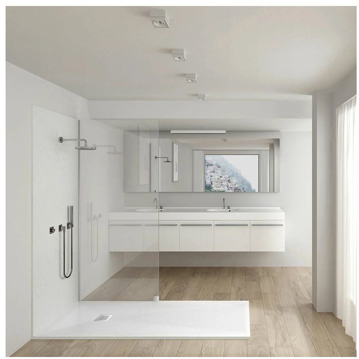- Шторки на борт ванны, которые эффективно блокируют поток воды во время принятия душа. На стеклянной шторке реже скапливаются микробы, чем на обычной занавеске, и она проста в уборке.