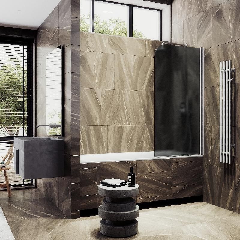 Шторка для ванны Maybahglass (Майбахгласс) поворотная на монопетле 1400х700 мм, стекло Графит матовый , профиль Хром матовый MGV-619-5