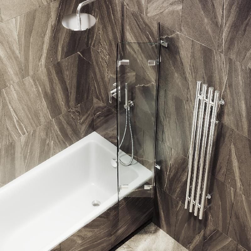 Стеклянные складные шторки для ванны являются стильным и функциональным решением для вашей ванной комнаты. Изготавливаются из прочного закаленного стекла, шторки легко складываются для экономии пространства.