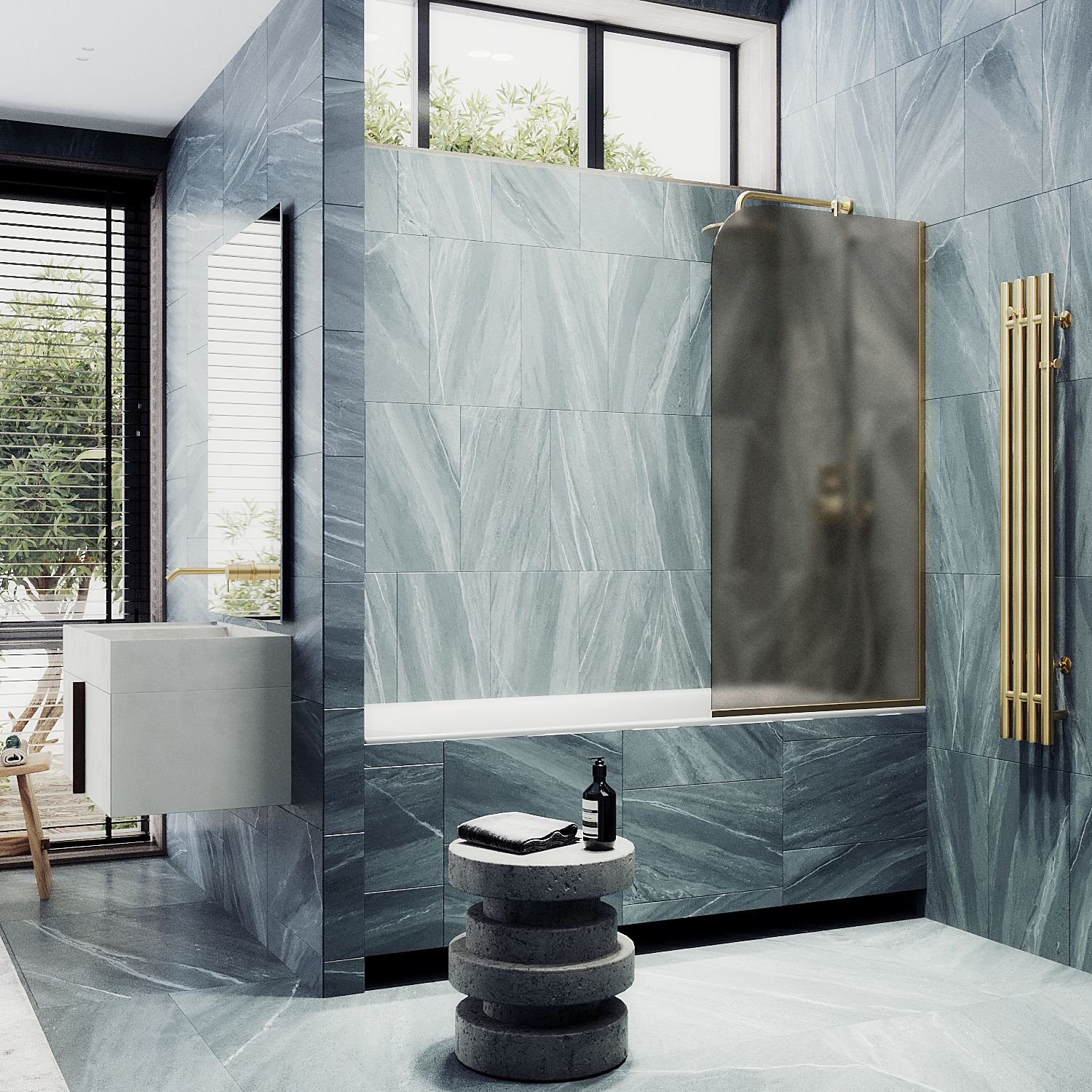 Шторка для ванны в узком профиле Maybahglass (Майбахгласс) 1400х500 мм, стекло Бронза матовая , профиль Золото MGV-73-3у