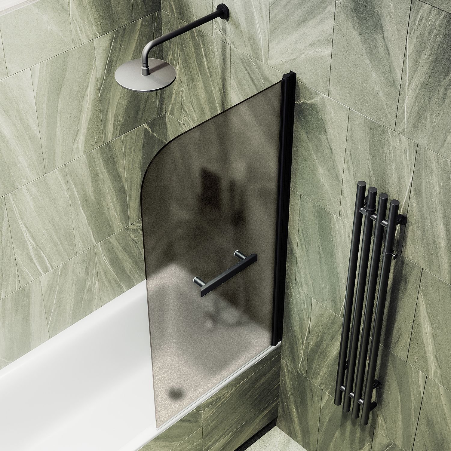 Закаленное стекло, цвет бронза матовое, толщина 6 мм 1400х540 мм - 1 шт. Монопетля, цвет черный- 1 шт. Комплект крепежа - 1 шт. Уплотнитель – 1 шт. Полотенцедержатель - 1 шт. Инструкция по монтажу - 1 шт.