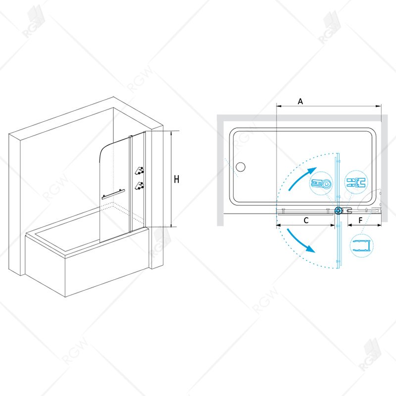 Шторка на ванну маятниковая. Толщина закаленного, безопасного стекла 6 мм. Стационарное стекло с двумя пристенными полочками. Подвижное стекло C = 630 мм. В комплекте широкая ручка-держатель. Функция подъема стекла с доводчиком.