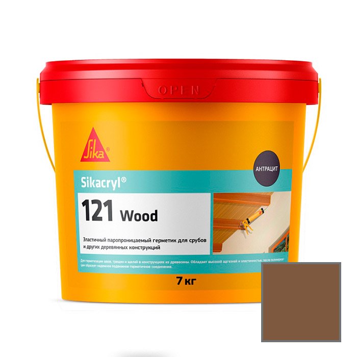 Герметик акриловый Sika (Зика) Sikacryl-121 Wood для деревянных конструкций темно-коричневый 7 кг