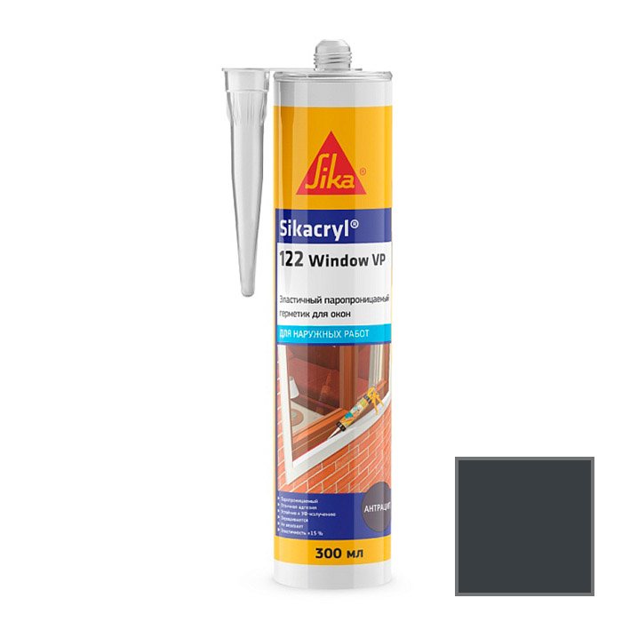 Герметик акриловый Sika (Зика) Sikacryl-122 Window VP для швов оконных конструкций антрацит 300 мл
