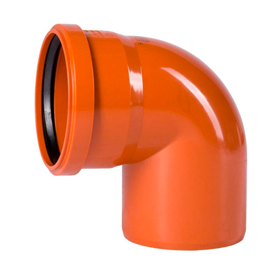 Отвод с резиновым уплотнением предназначен для создания поворота внутренней канализационной системы из труб.