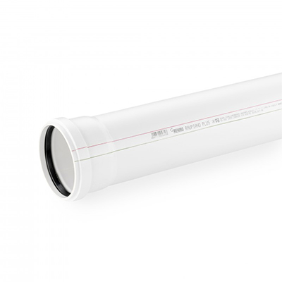 Труба для систем внутренней канализации с раструбом и резиновым уплотнением. Материал: полипропилен RAU-PP (усилен минералами). Цвет: RAL 9003 белый.