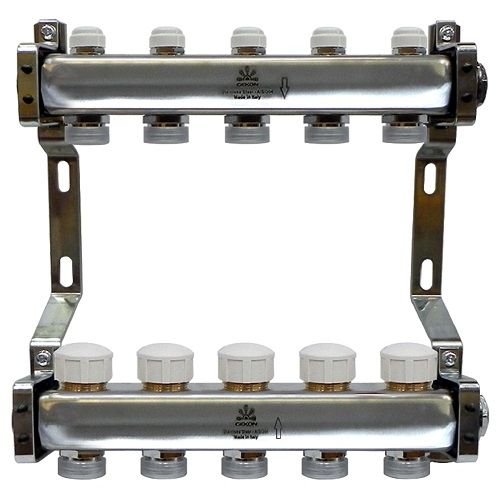 Коллекторный блок Gekon (Гекон) для тепл.пола и радиаторного отопления 1х3/4 дюйм, отводов 5, в комплекте: термостат. (GK 75105)