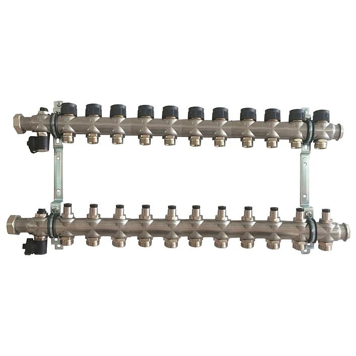 OVENTROP-Коллектор Multidis SF 1 дюйм для панельного отопления и охлаждения на 2 контура, с рег. вставками, из нерж.стали.