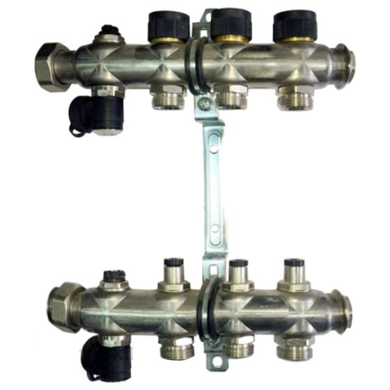 OVENTROP-Коллектор Multidis SF 1 дюйм для панельного отопления и охлаждения на 2 контура, с рег. вставками, из нерж.стали.