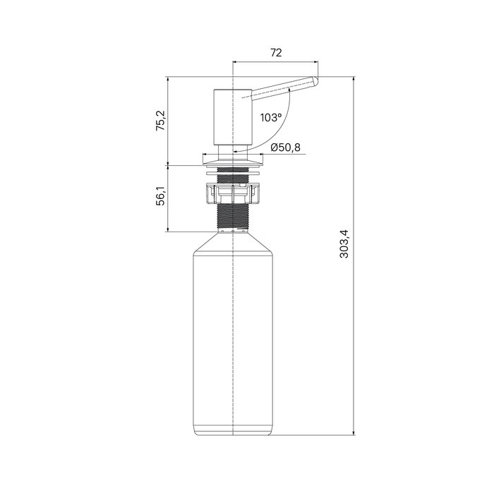 • Легко наполнять – верхняя часть дозатора снимается без резьбы и удерживается уплотнительным кольцом.