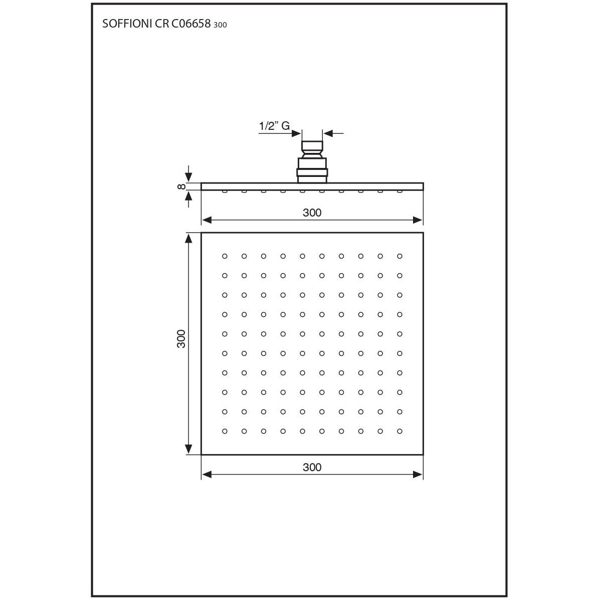 Душевая головка Emmevi (Эммеви) , квадратная, антикальковая, латунь 300х300 мм, подключение 1/2″, хром, C06658mm300/CR
