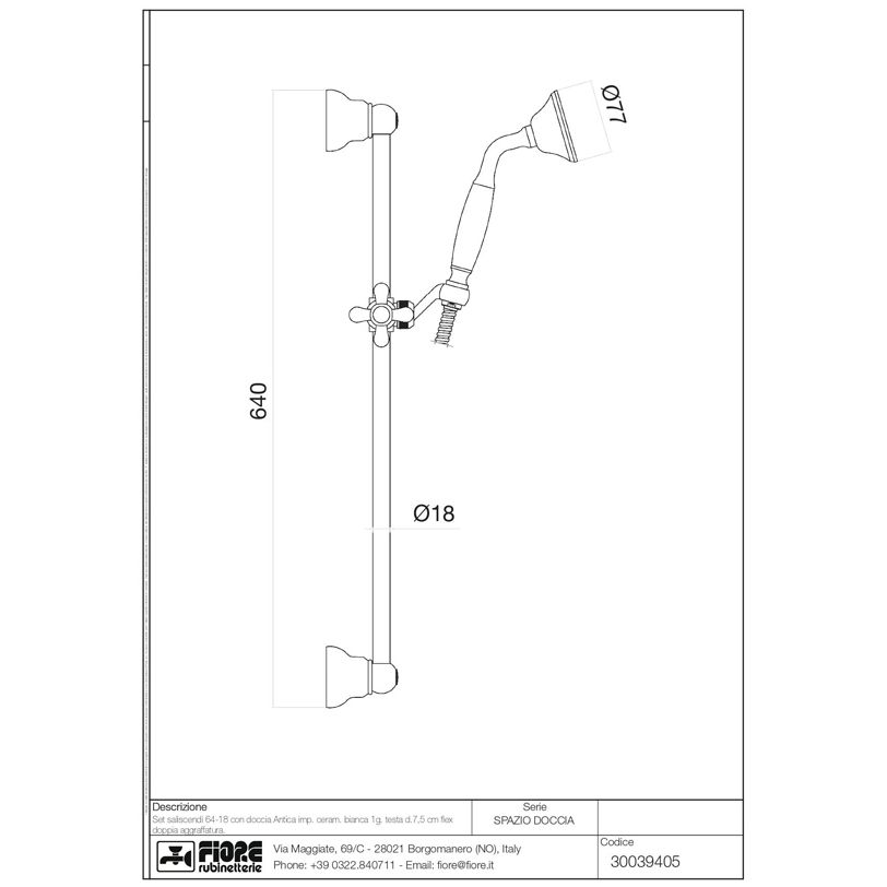 Душевая штанга Fiore (Фиоре) Shower, h64 см, с набором для душа: 1-режимный ручной душ c керамической накладкой, шланг 150 см, цвет бронза 30Z394Z5