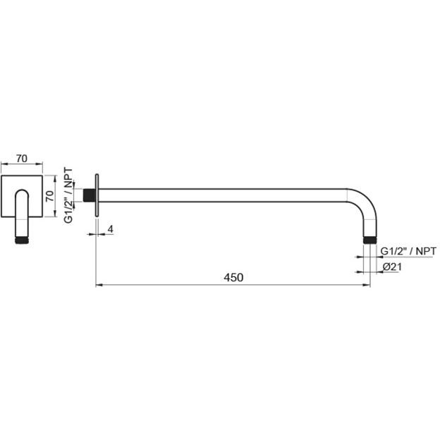 ALMAR Держатель верхнего душа настенный L45 см с квадратным отражателем, цвет нержавеющая сталь брашированная AISI 316