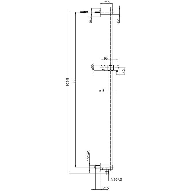 Штанга для душа Bossini (Боссини) Apice 90 см., с подводом воды и держателем ручного душа , регулируемым по высоте, цвет хром D39000.030