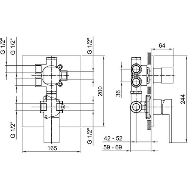 Скрытая часть смесителя Fantini (Фантини) AR/38 для душа, переключатель на 3 источника, с Есо Sуstеm, 1/2″ 19 02 3387A