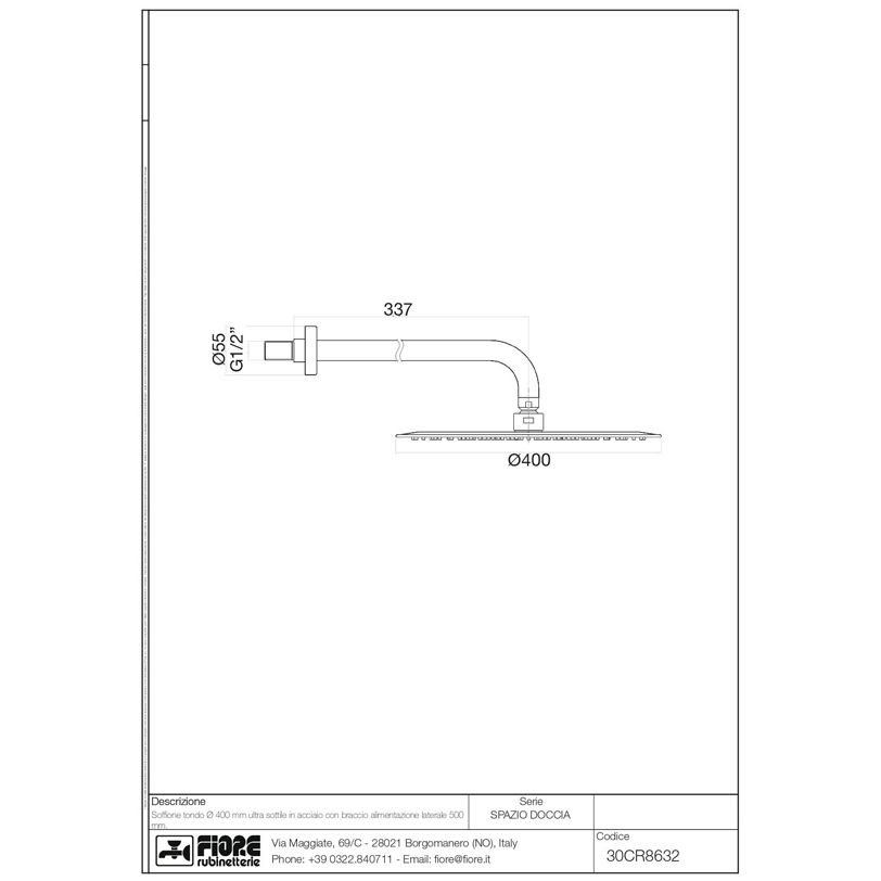 Верхний душ Fiore (Фиоре) Shower, круглый ультратонкий Ø40 см и настенный кронштейн 33,7 см, цвет хром 30CR8632