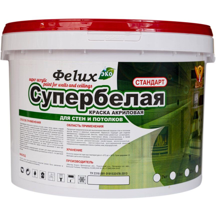 Краска для стен и потолков акриловая ФеLux (Феликс) Стандарт супербелая 25 кг