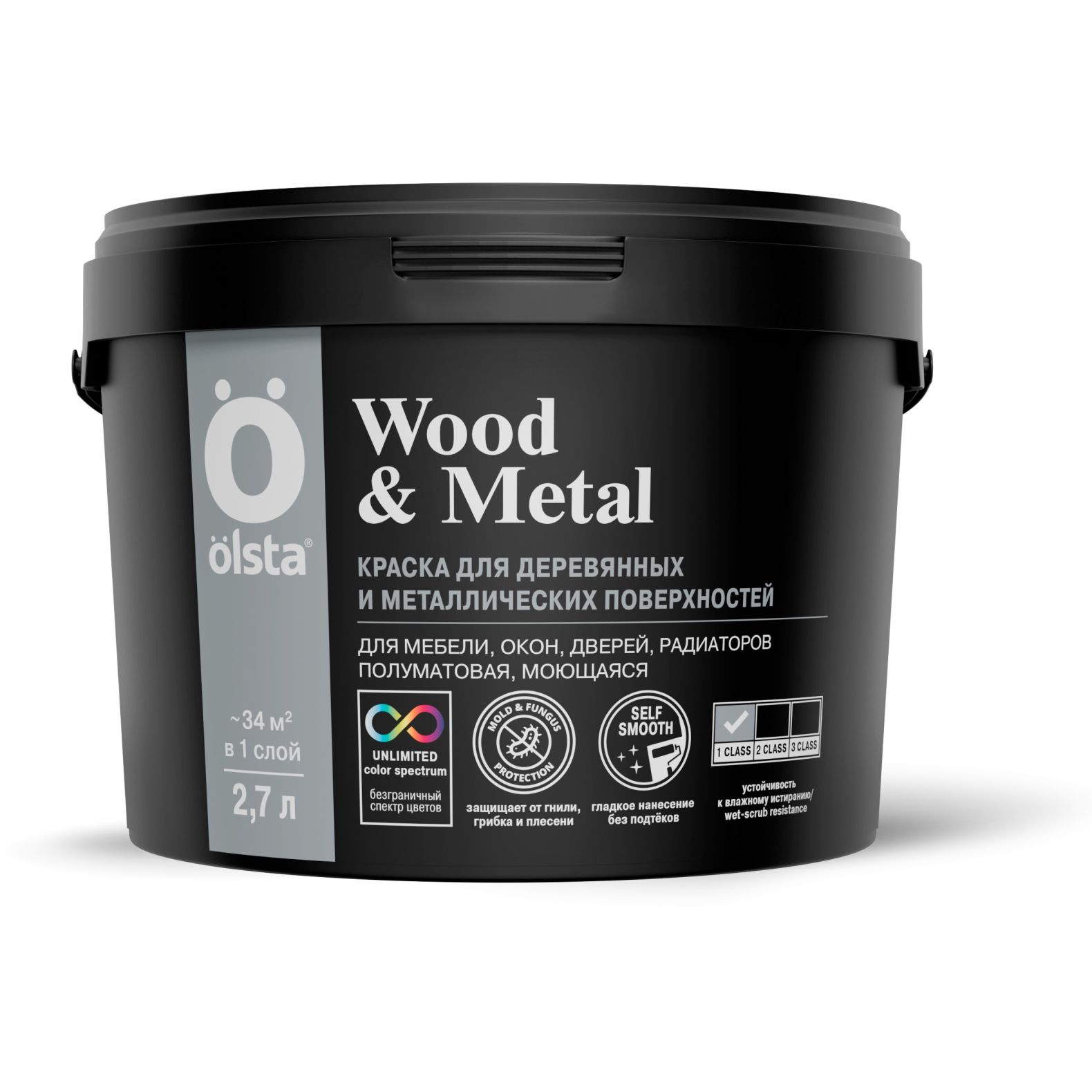 Краска Olsta (Ольста) Wood and Metal Полуматовая Белая база A 2,7 л