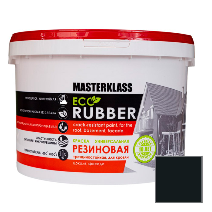 Краска универсальная резиновая Мастер-класс (Master Class) для кровли, цоколя и фасада Черная 10 кг