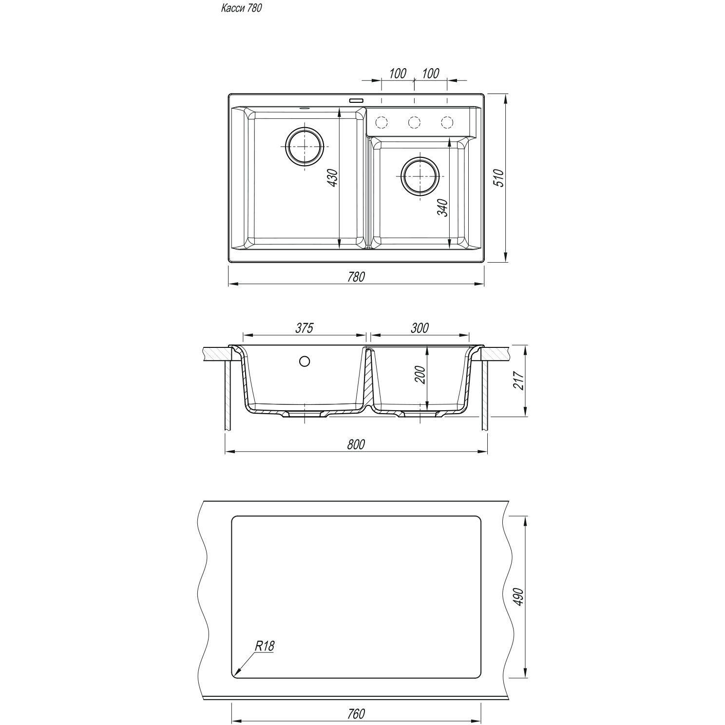 Мойка кухонная прямоугольная Флорентина (Florentina) Касси 780 Песочная (20.230.E0780.107)