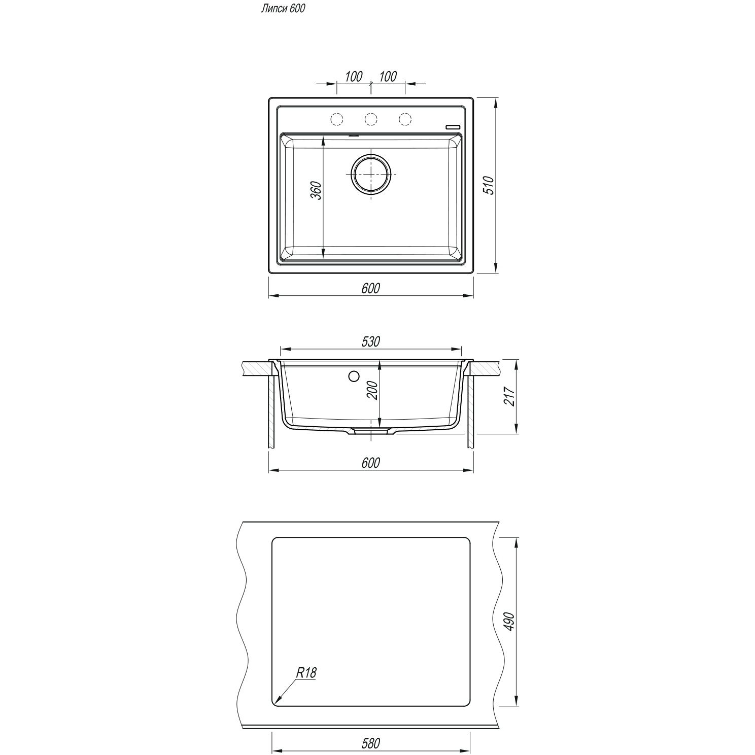 Мойка кухонная прямоугольная Флорентина (Florentina) Липси 600 Грей (20.120.D0600.305)