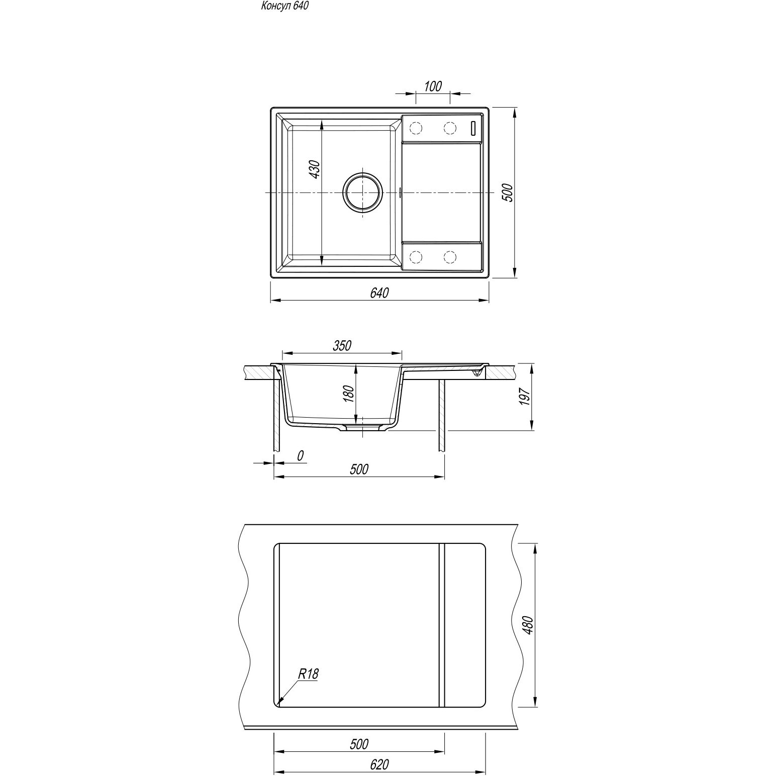Мойка кухонная прямоугольная Flortek (Флортек) Консул 640 Серый шелк (23.020.C0640.307)