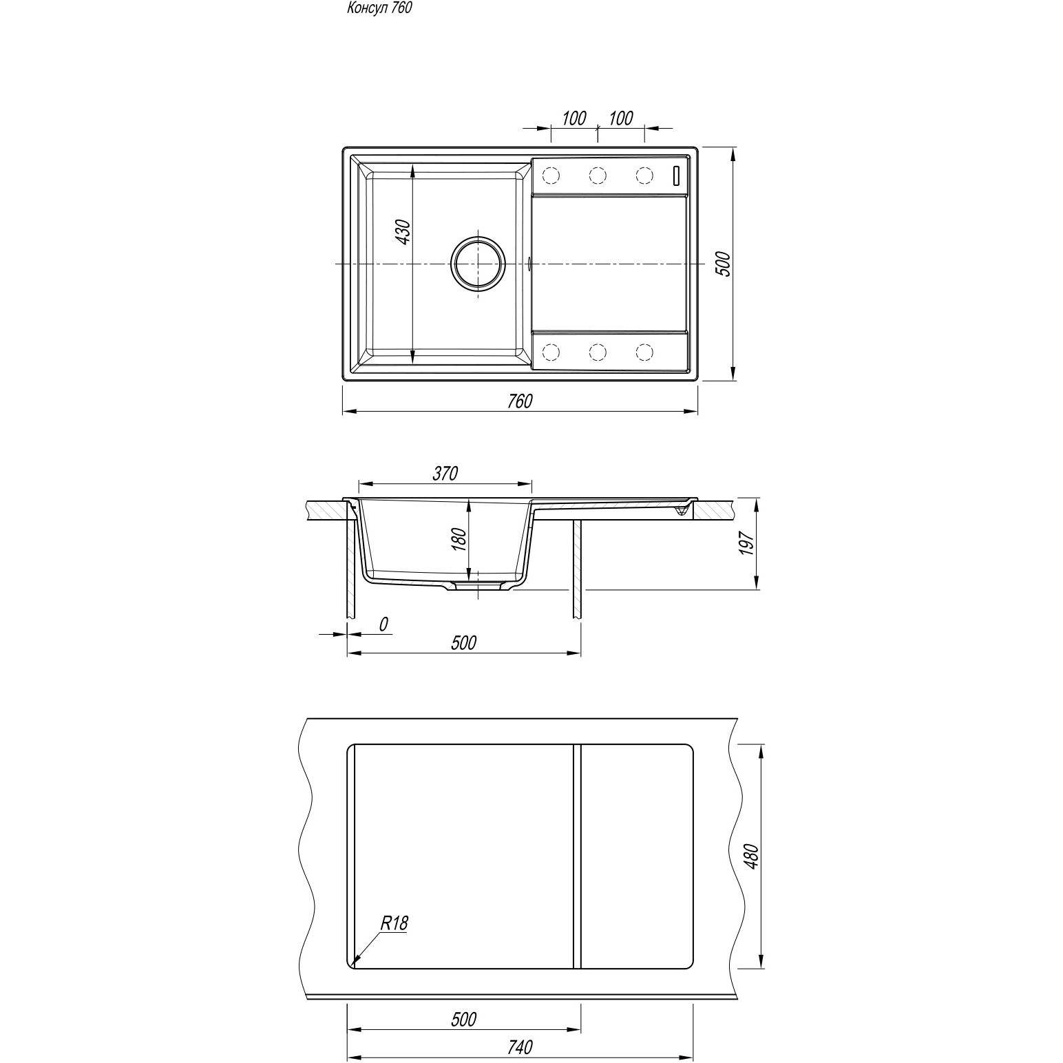 Кухонная мойка КОНСУЛ 760 . Элегантный минималистичный дизайн. Удобна и практична в использовании. Предусмотрены дополнительные отверстия для установки аксессуаров. Модель оборачиваемая.