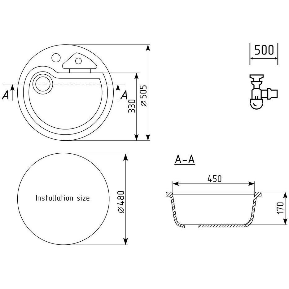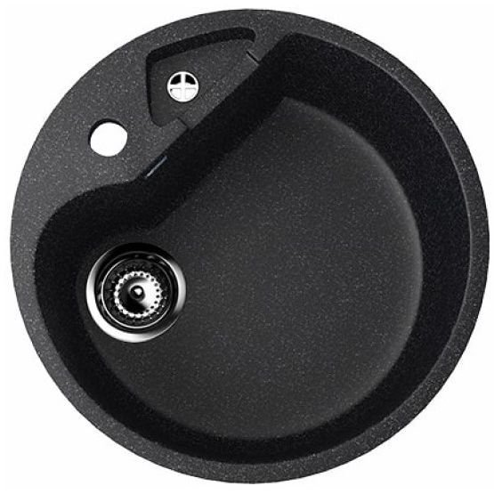 Мойка кухонная Ulgran (Улгран) из искусственного мрамора круглая U-108, цвет: черный, база: 48х48 см, арт. U-108-308