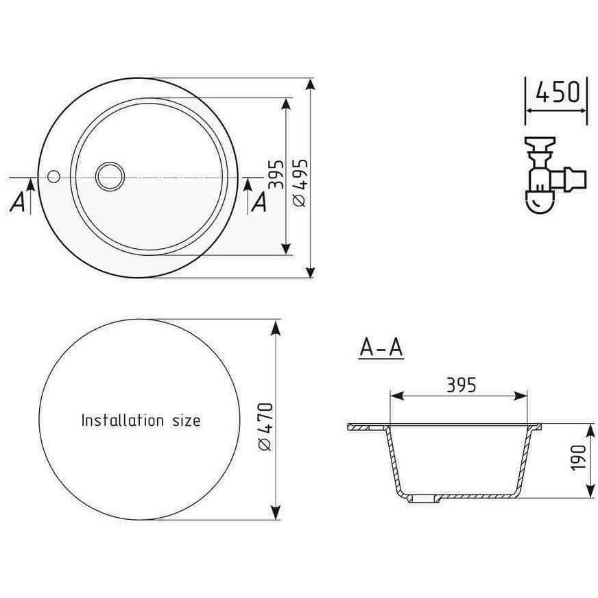 Мойка кухонная Ulgran (Улгран) из искусственного мрамора круглая U-405, цвет: бежевый, база: 47х47 см, арт. U-405-328
