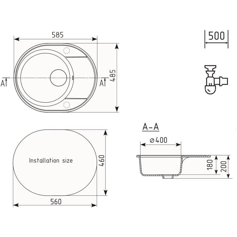Мойка кухонная Ulgran (Улгран) из кварцевого композита овальная Quartz Nora, цвет: уголь, база: 56х46 см, арт. Nora 585-07