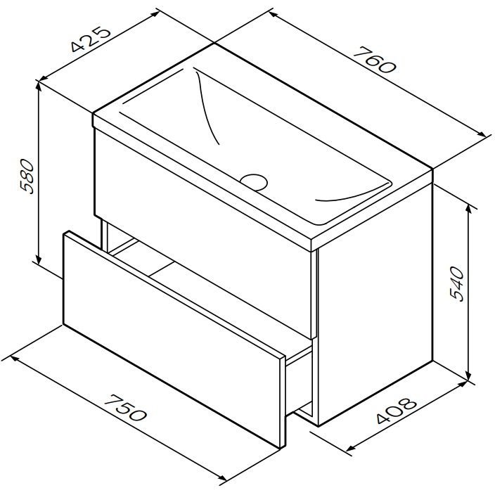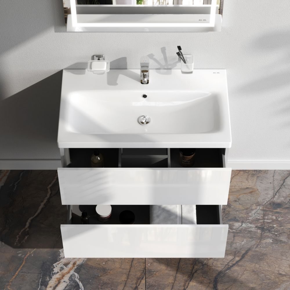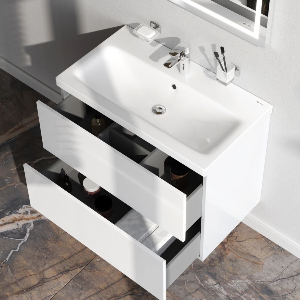 База под раковину Am.Pm (Ам.Пм) Gem подвесная, 75 см 2 ящика push-to-open, белый глянец, M90FHX07522WG