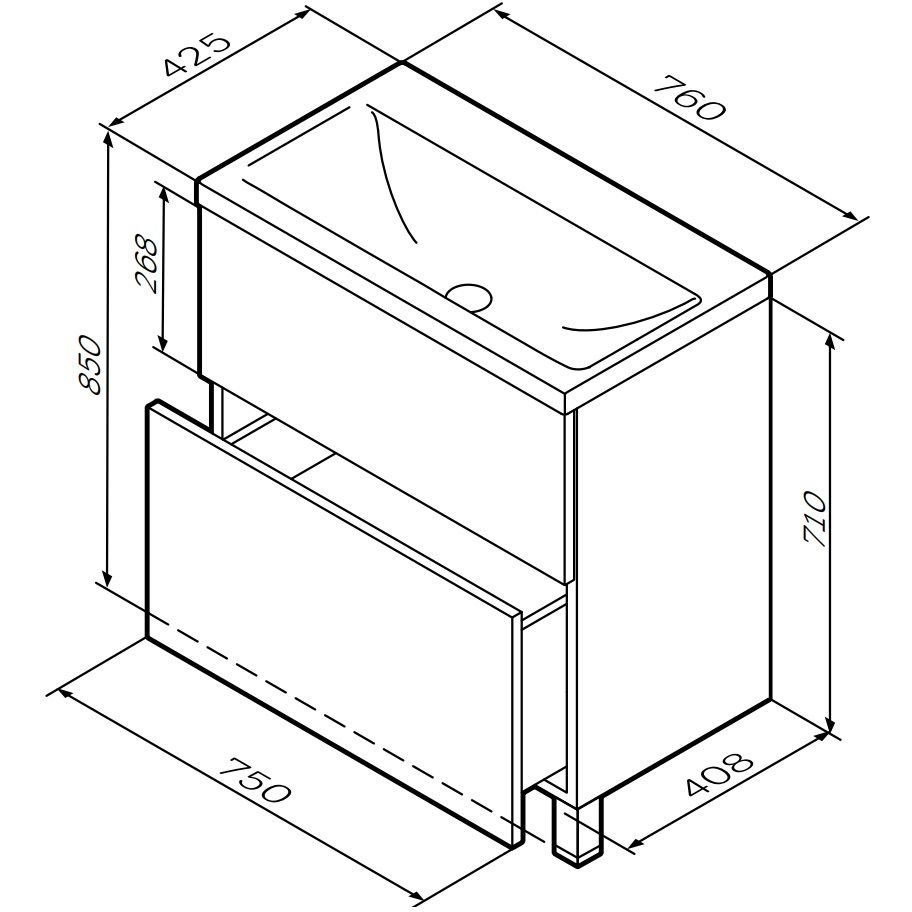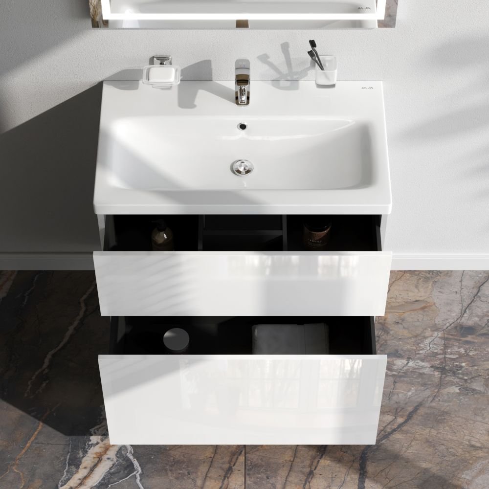 База под раковину напольная Am.Pm (Ам.Пм) Gem глянец, 75 см 2 ящика push-to-open, белый, M90FSX07522WG32