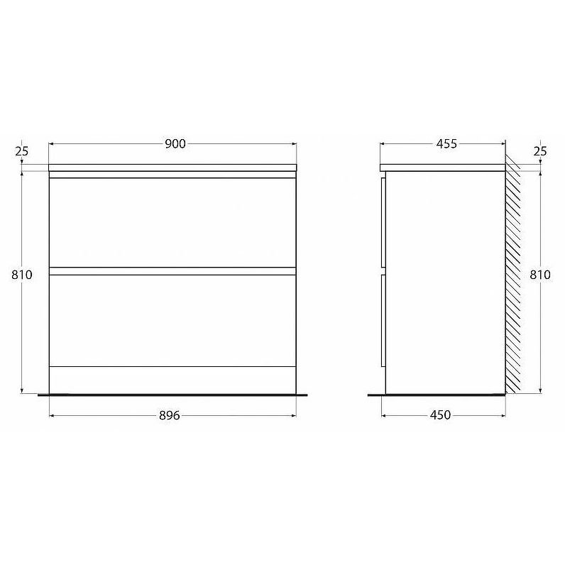 База под раковину напольная BelBagno (Бельбагно) Albano с двумя выкатными ящиками Bianco Lucido 900x450x810 ALBANO-900-2C-PIA-BL