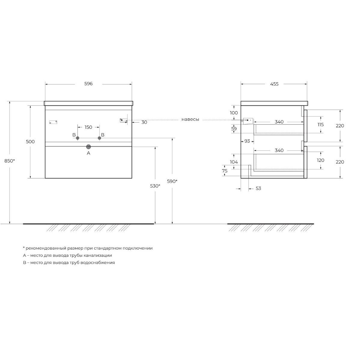 База под раковину подвесная BelBagno (Бельбагно) Albano с двумя выкатными ящиками Bianco Lucido 600x450x500 ALBANO-600-2C-SO-BL