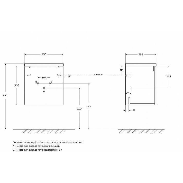 База под раковину подвесная BelBagno (Бельбагно) ETNA с одной распашной дверцей с одной полкой левосторонняя Rovere Moro 496x392x500 ETNA-500-1A-SO-RW-P-L