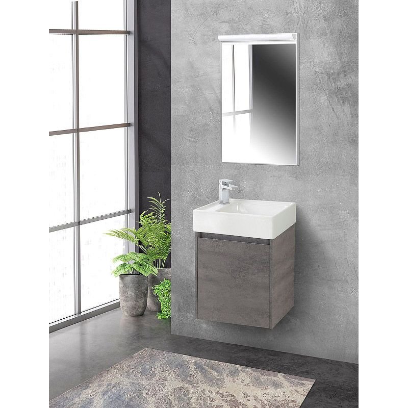 База под раковину подвесная BelBagno (Бельбагно) KRAFT MINI с распашной дверцей левосторонняя Cemento Grigio 494х256x490 KRAFT MINI-500/260-1A-SO-CG-L