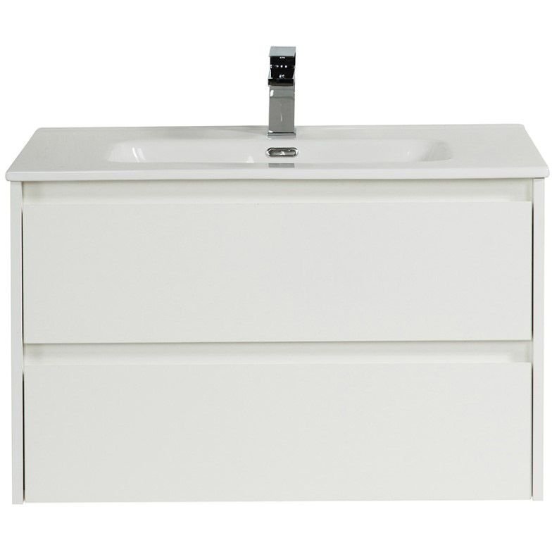 База под раковину подвесная BelBagno (Бельбагно) KRAFT с фрезерованными ручками по всей длине фасада с двумя выкатными ящиками Bianco Opaco 1000x460x500 KRAFT-1000-2C-S